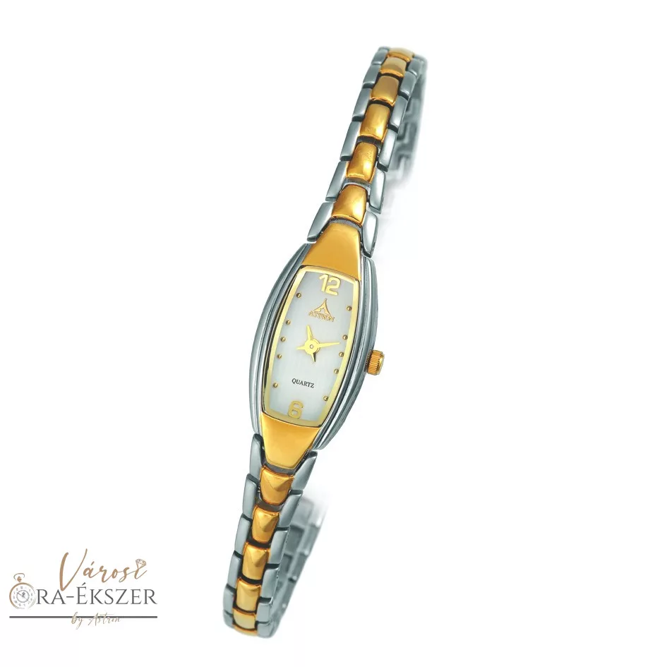ASTRON 5091-7 női karóra, bicolor színű nemesacél tok, bicolor fémcsat, fehér számlap, keményített ásványüveg, quartz szerkezet, cseppmentes vízállóság