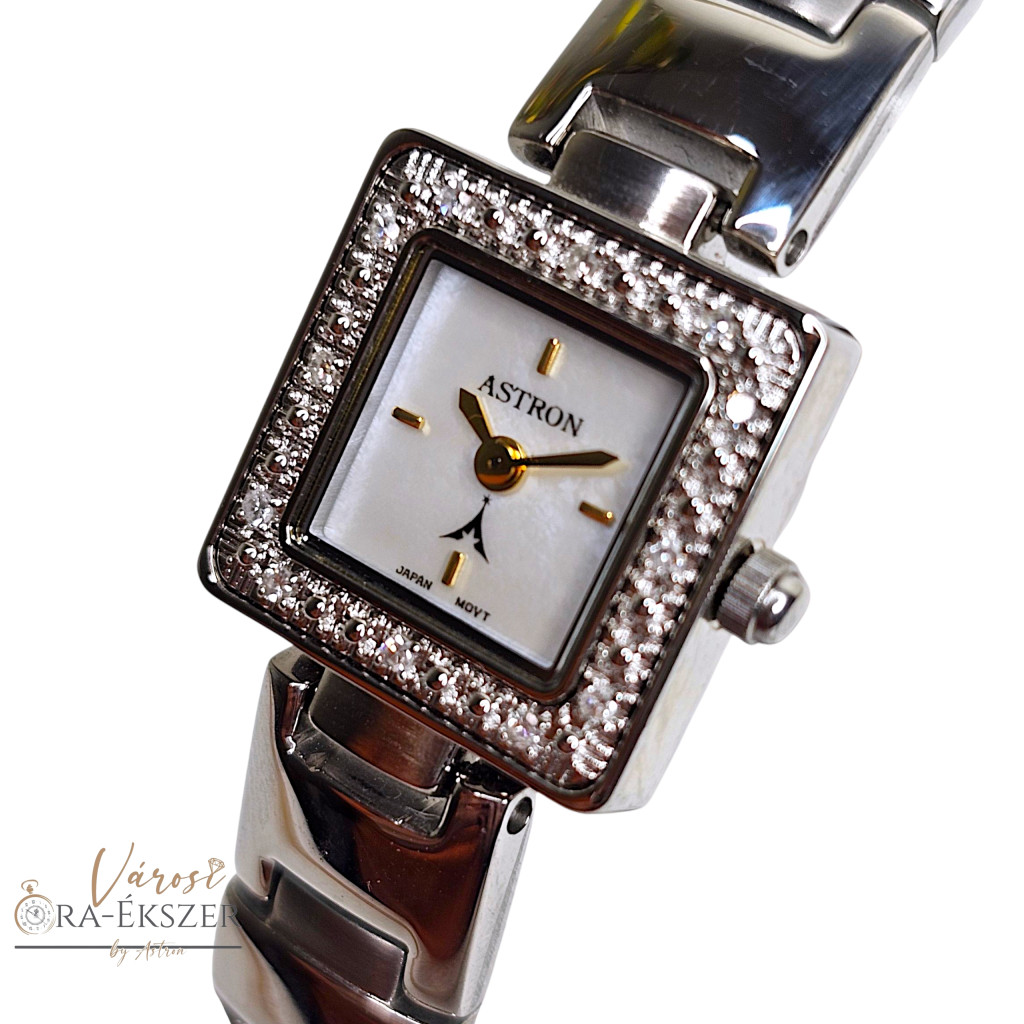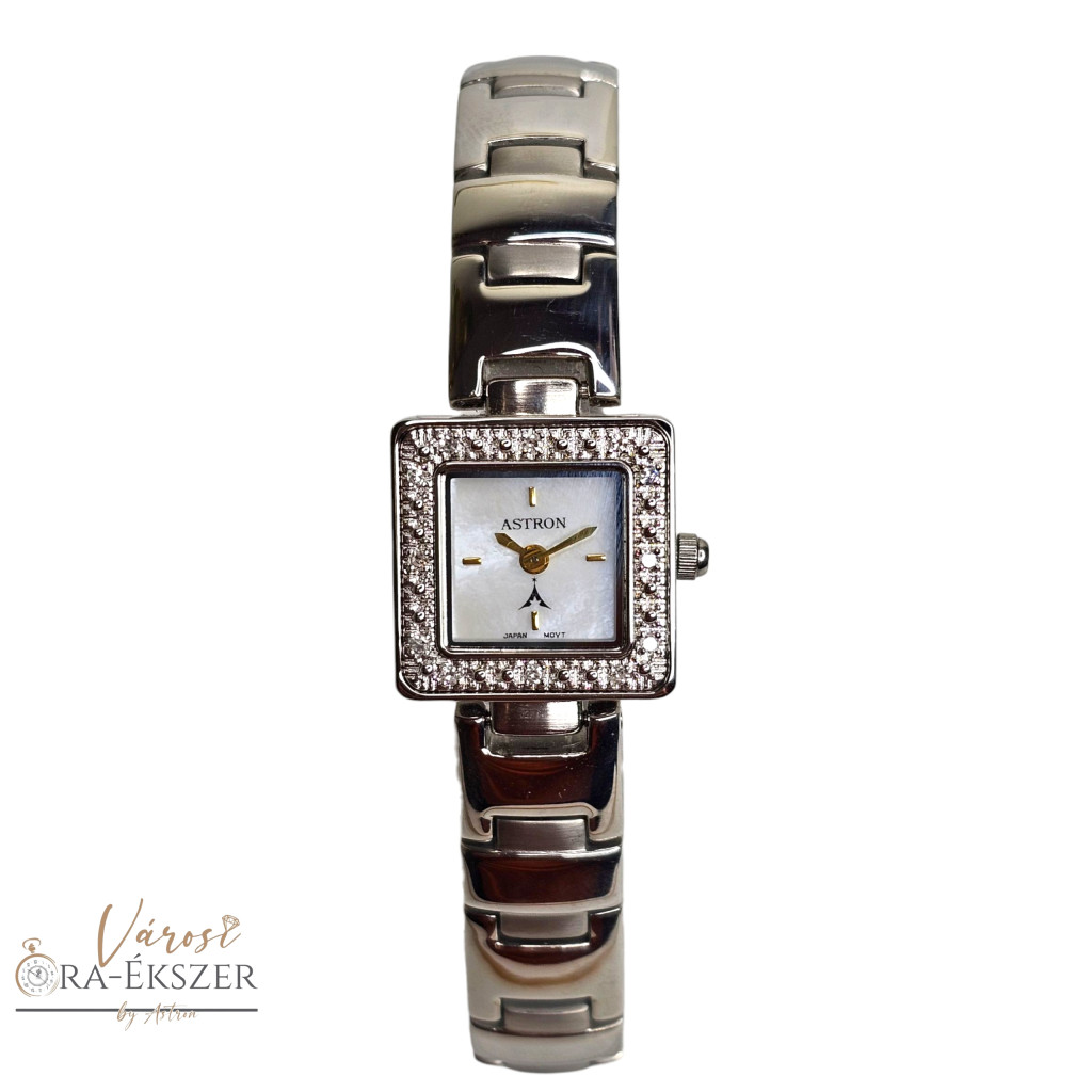 ASTRON 5113- női karóra, gyémánt köves ezüst színű fém tok, ezüst színű fémcsat, fehér számlap, keményített ásványüveg, quartz szerkezet, cseppmentes vízállóság