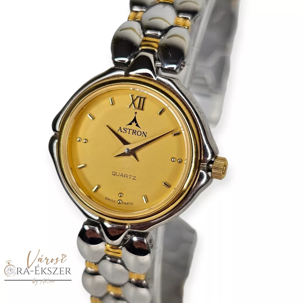 ASTRON 5115-9 női karóra, bicolor színű nemesacél tok, bicolor nemesacél csat, arany színű számlap, keményített ásványüveg, svájci szerkezet, quartz szerkezet, cseppmentes vízállóság