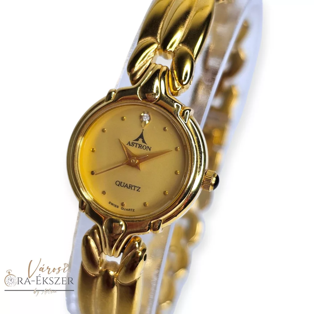 ASTRON 5163-9 női karóra, ékszeróra arany színű fém tok és csat, arany színű számlap, keményített ásványüveg, svájci szerkezet, quartz szerkezet, cseppmentes vízállóság