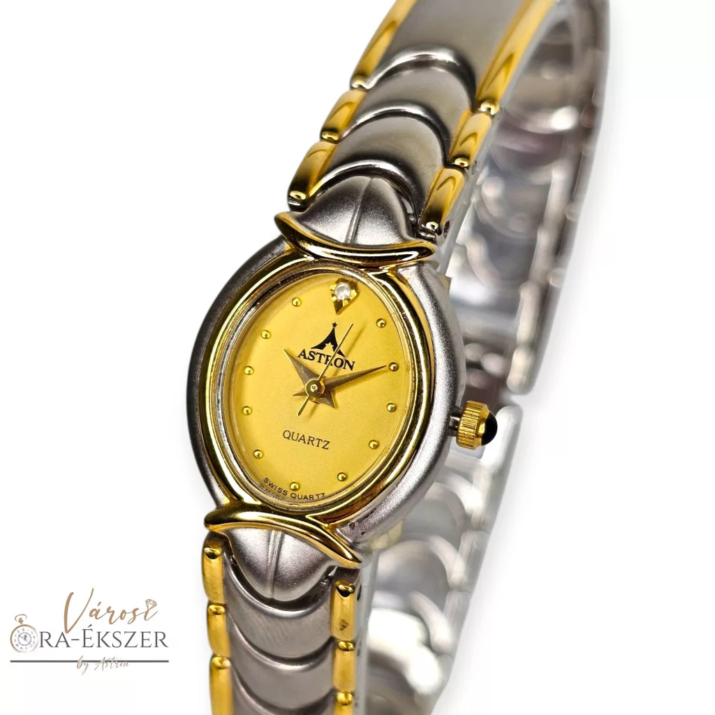 ASTRON 5170-9 női karóra, bicolor színű nemesacél tok, bicolor nemesacél csat, arany színű számlap, keményített ásványüveg, svájci szerkezet, quartz szerkezet, cseppmentes vízállóság