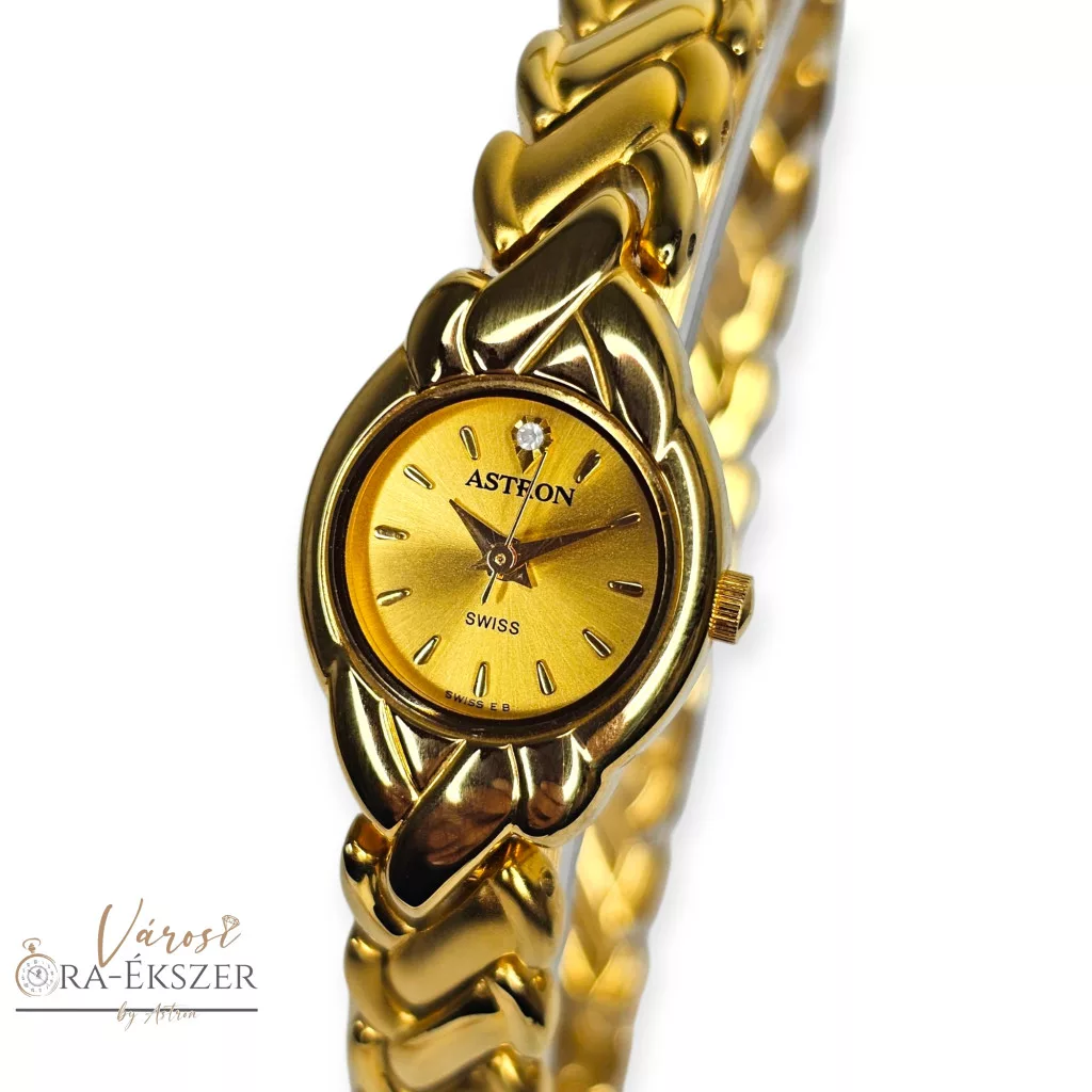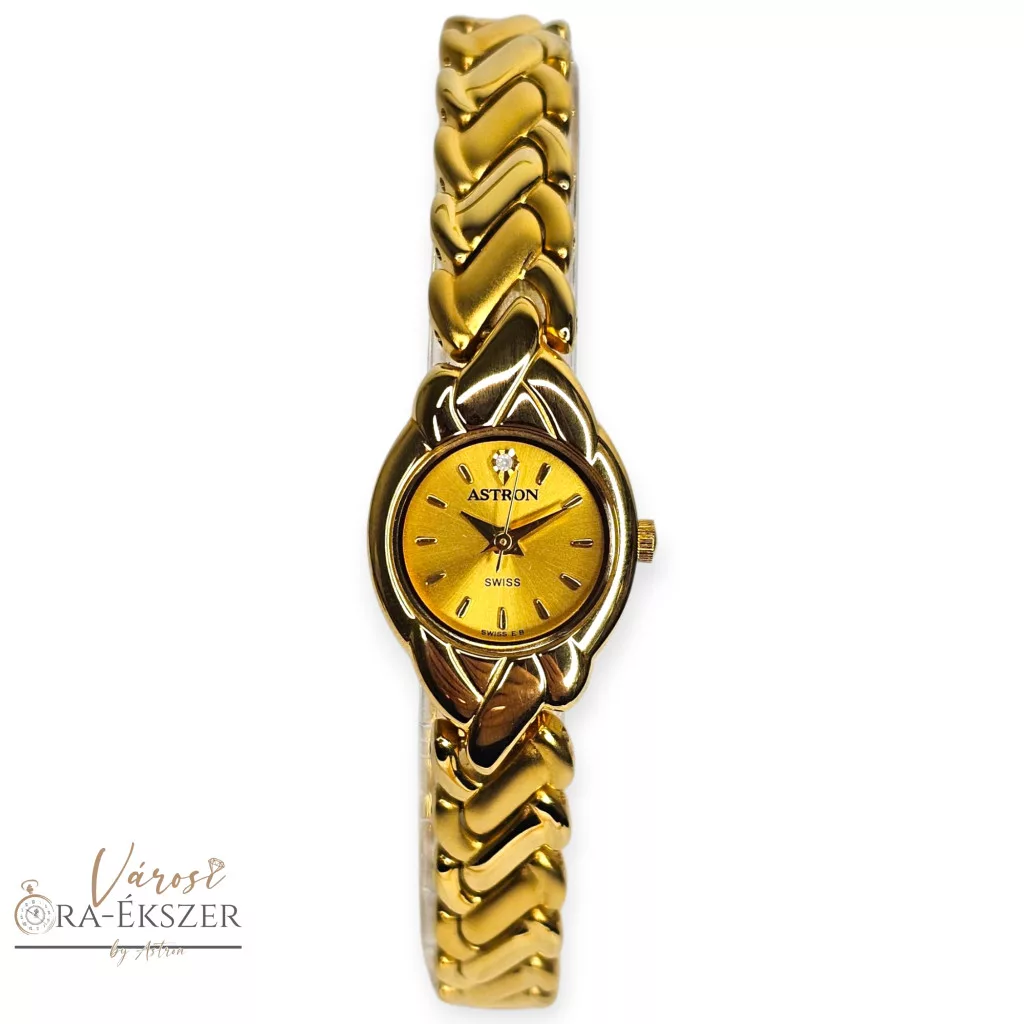ASTRON 5182-9 női karóra, arany színű fém tok, arany színű fémcsat, arany színű számlap, keményített ásványüveg, svájci szerkezet, quartz szerkezet, cseppmentes vízállóság