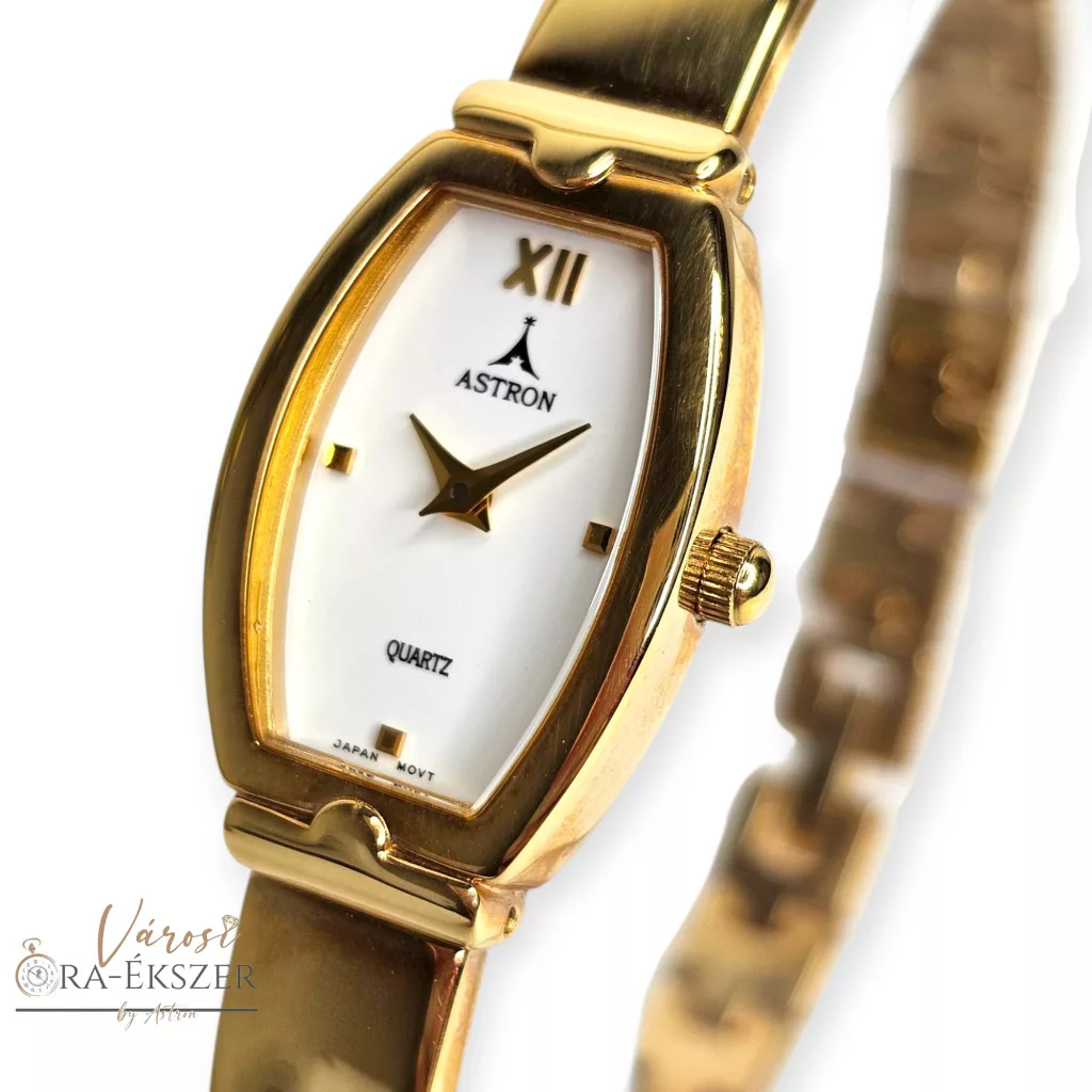 ASTRON 5249-7 női karóra, ékszeróra arany színű fém tok és csat, fehér színű számlap, keményített ásványüveg, quartz szerkezet, cseppmentes vízállóság