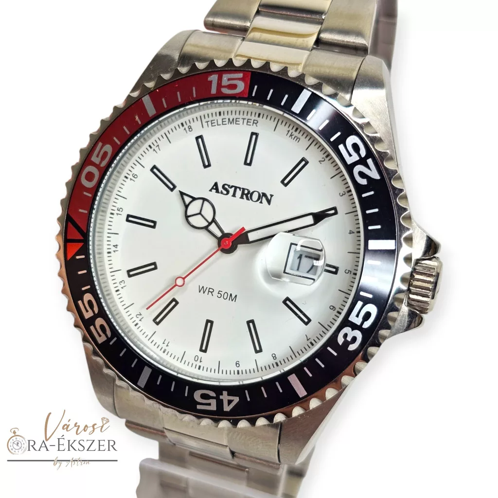 ASTRON 5559-7 sportos férfi karóra, ezüst színű nemesacél tok, ezüst színű nemesacél csat, fehér színű számlap, keményített ásványüveg, quartz szerkezet, 50 m (5 ATM) vízállóság