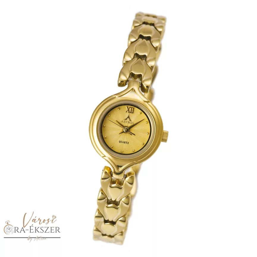 ASTRON 5701-9 női karóra, arany színű nemesacél tok, arany színű fémcsat, pezsgőszínű számlap, keményített ásványüveg, quartz szerkezet, cseppmentes vízállóság