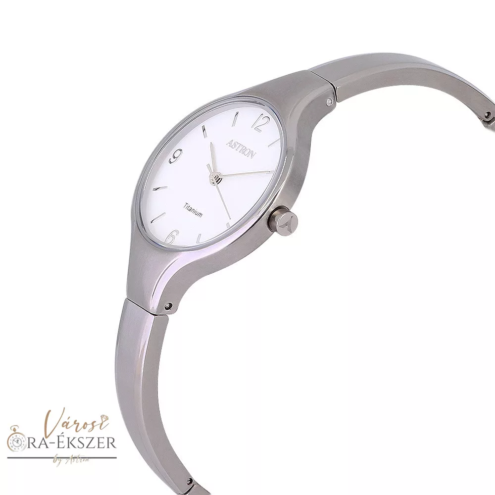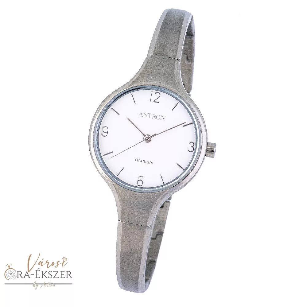 ASTRON 8023-7 női karóra, ékszeróra, ezüst színű titánium tok, ezüst színű titánium csat, fehér számlap, keményített ásványüveg, quartz szerkezet, cseppmentes vízállóság