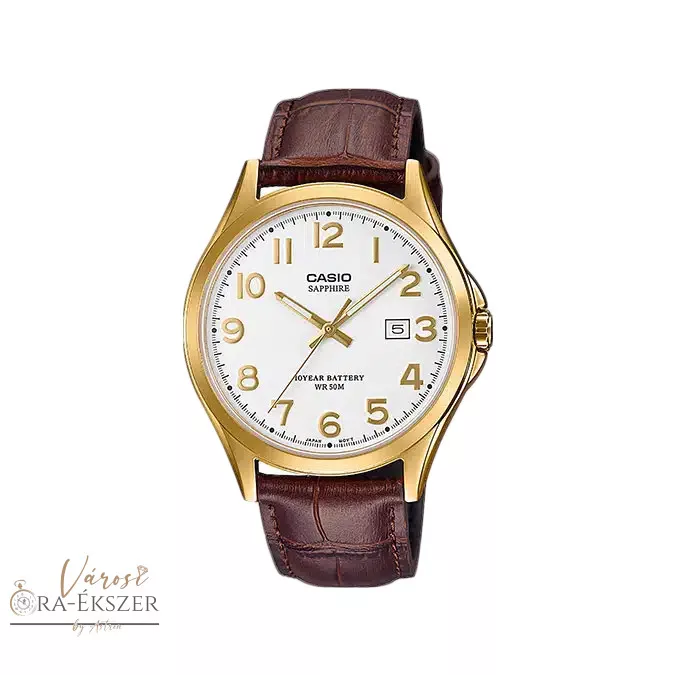 Kulcsszavak: Casio férfi karóra, arany szegélyes óra, elegáns karóra, bőrszíjas Casio óra, fehér számlapos karóra, MTP-100GL-7A, klasszikus férfi karóra