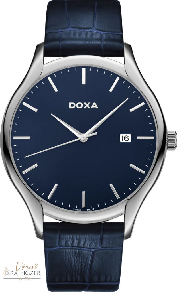 DOXA CHALLENGE 215.10.201.03 FÉRFI KARÓRA EZÜST SZÍNŰ NEMESACÉL TOKKAL ÉS KÉK BŐRSZÍJJAL
