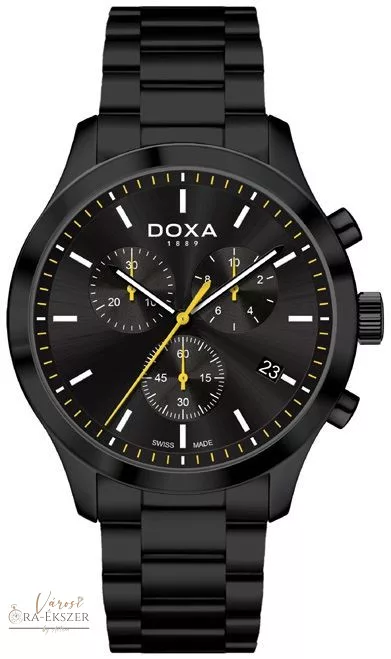 Kulcsszavak: DOXA férfi karóra, DOXA D-Chrono, fekete férfi karóra, kronográf óra, svájci karóra, sportos elegáns férfi karóra