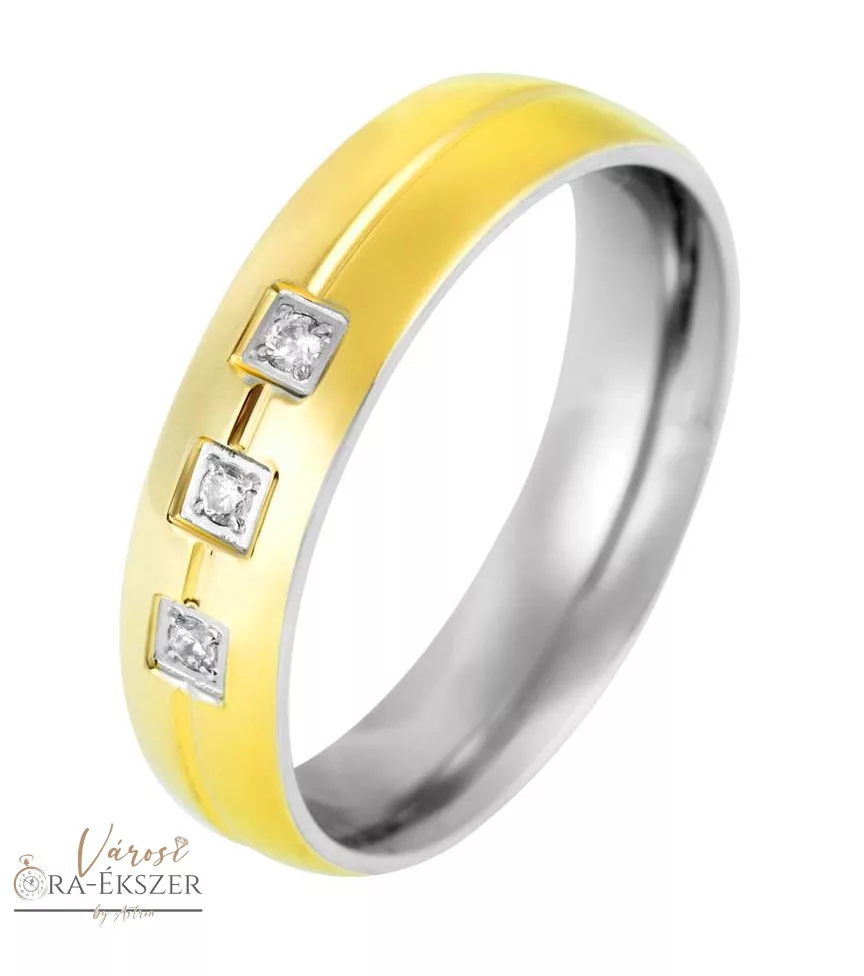 Ez az arany színű, köves nemesacél karikagyűrű női viseletre készült, amely elegáns és időtálló megjelenést biztosít. A kerekített forma lágy, finom vonalvezetést ad a gyűrűnek, így különösen kényelmes és nőies viseletet nyújt.