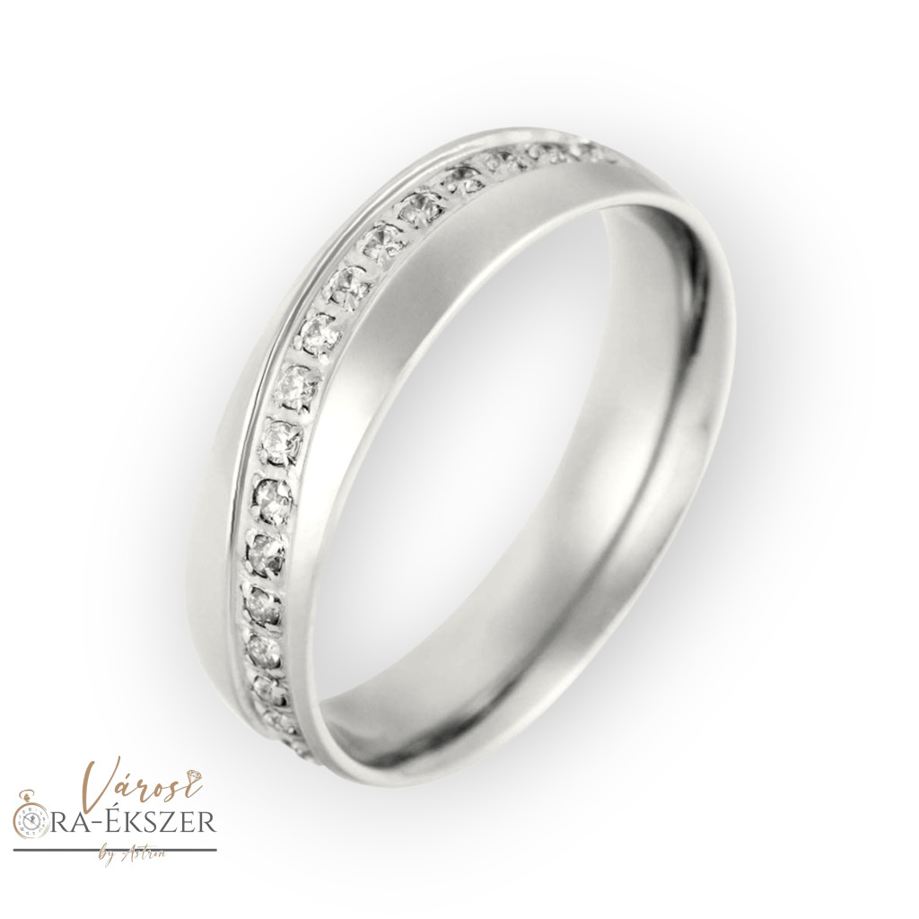 NEMESACÉL KARIKAGYŰRŰ, KÖVES, NŐI ÉKSZER, EZÜST SZÍNŰ, ORVOSI FÉM, HULLÁM MINTA