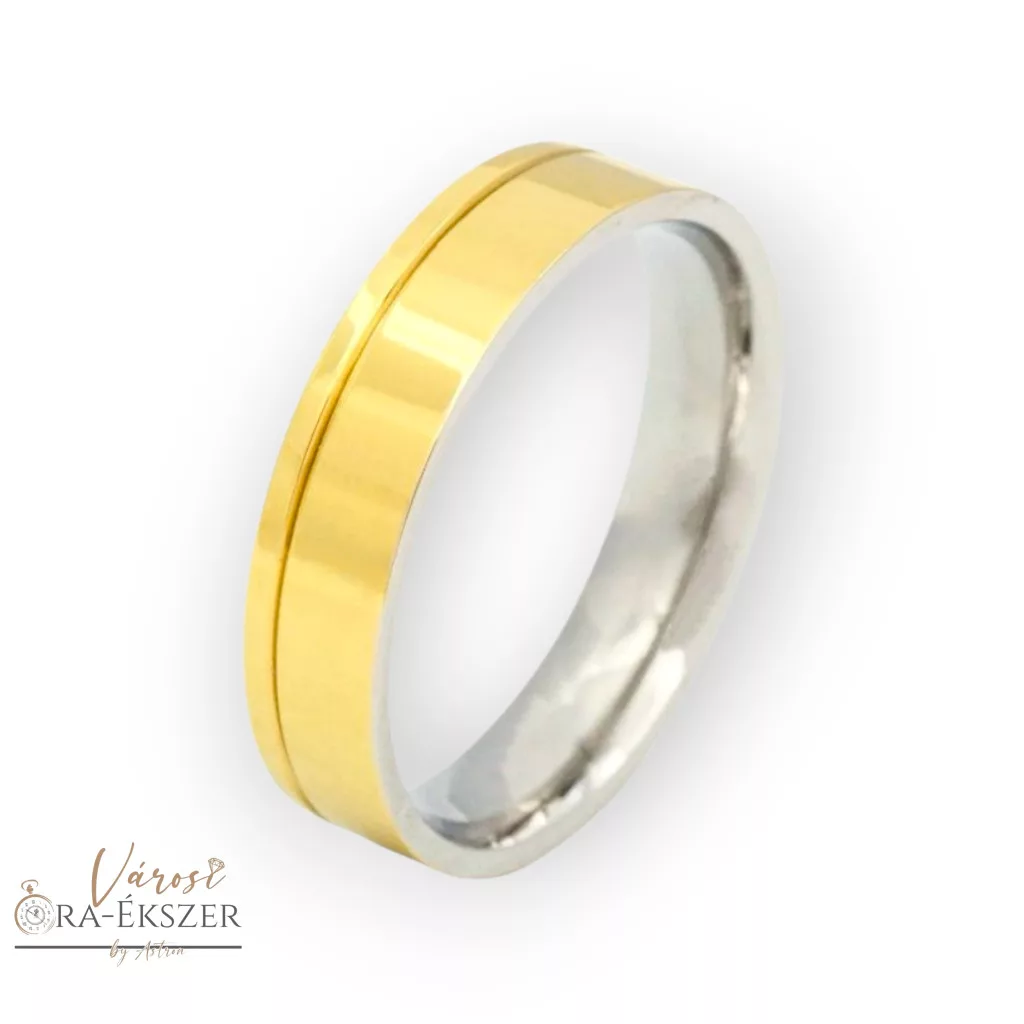 Ez az arany színű, szögletes formájú nemesacél karikagyűrű férfiak számára készült, amely modern és elegáns megjelenést biztosít. A fényes felület kiemeli a gyűrű letisztult vonalait, így igazán látványos, mégis ízléses ékszer.