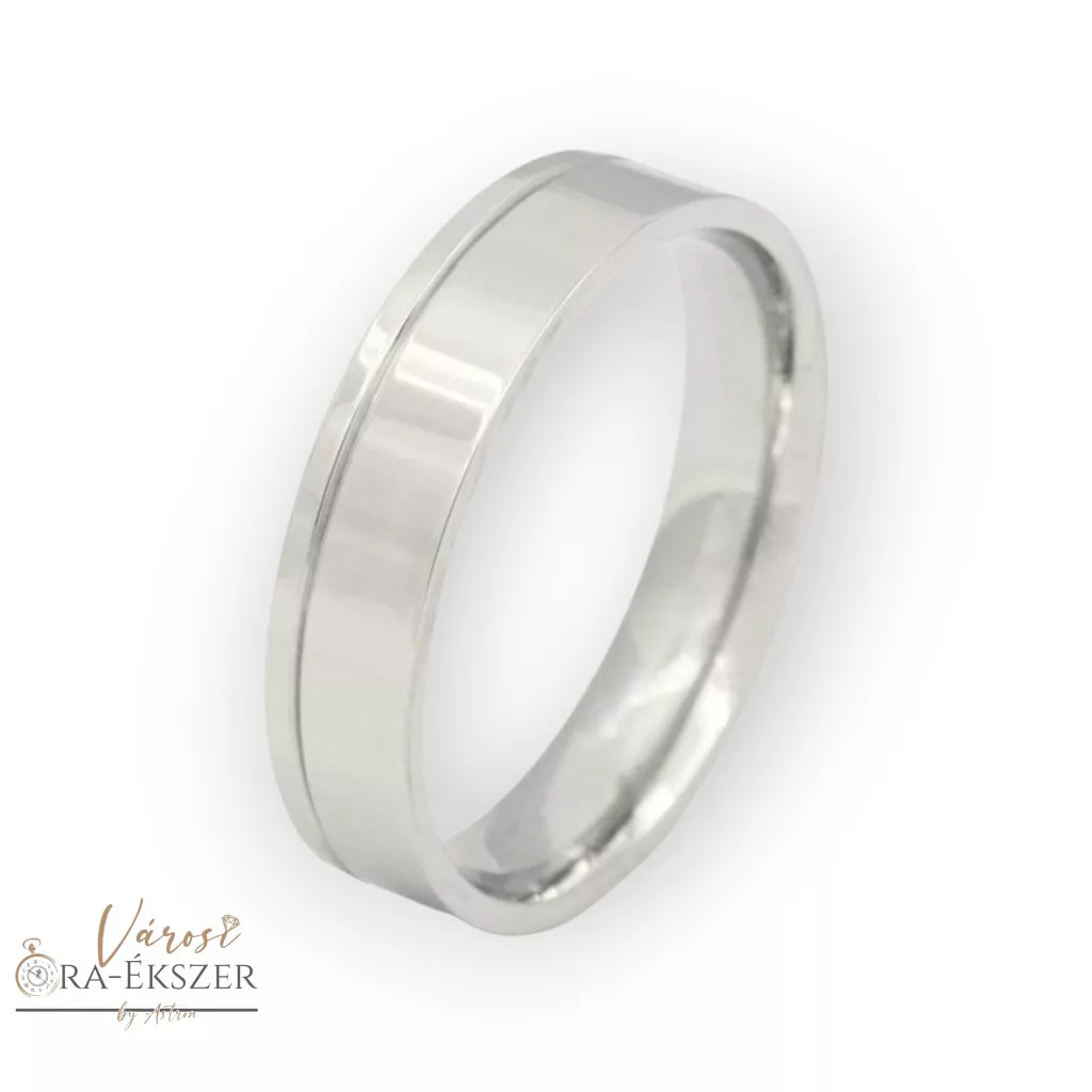 Ez a 5 mm-es szögletes férfi karikagyűrű a modern stílus, a tartósság és a letisztult elegancia tökéletes kombinációja.