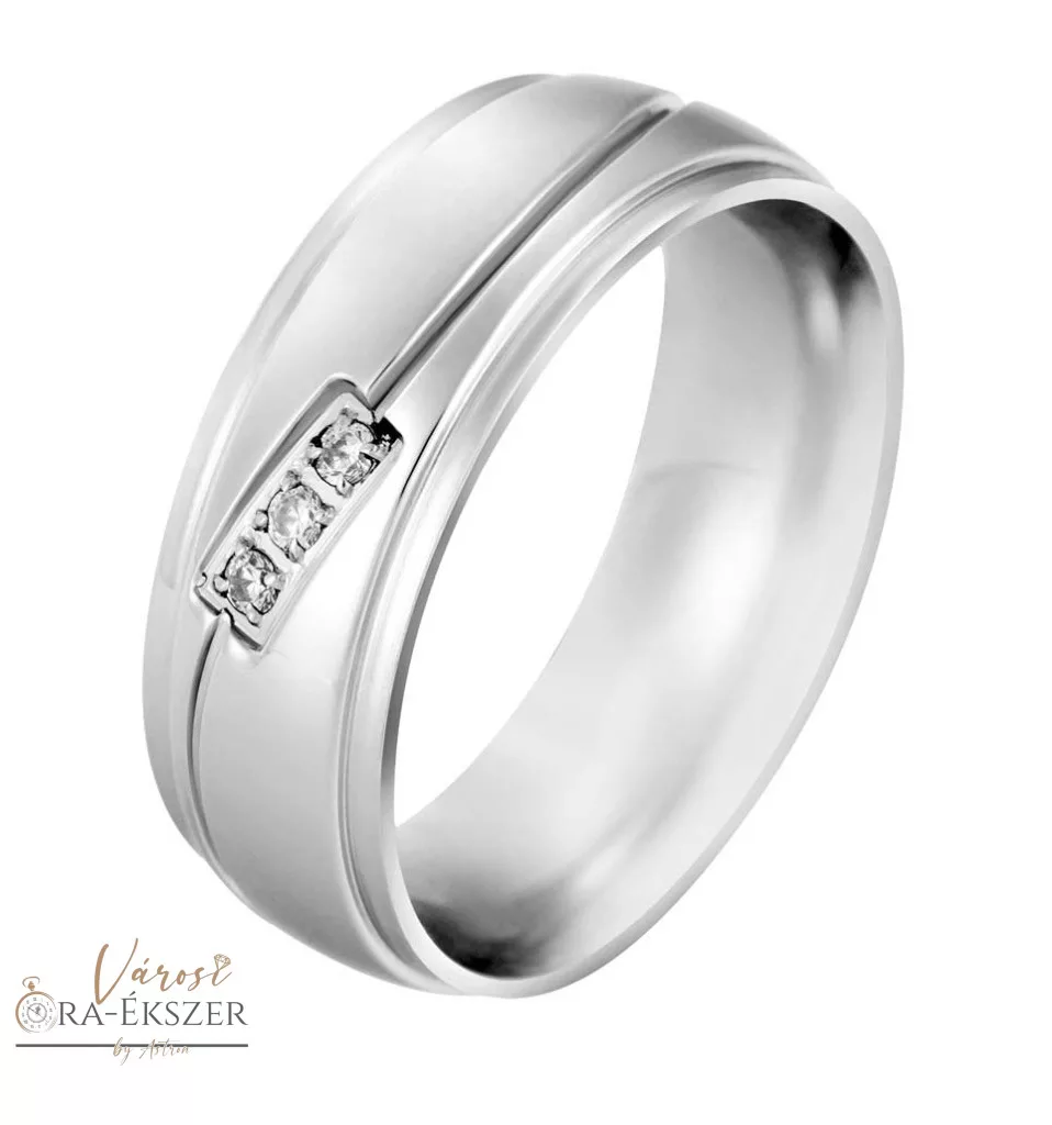 Ez a 7 mm-es, 3 köves, mart ezüst női karikagyűrű a modern elegancia, a finom részletek és a tartósság tökéletes kombinációja.