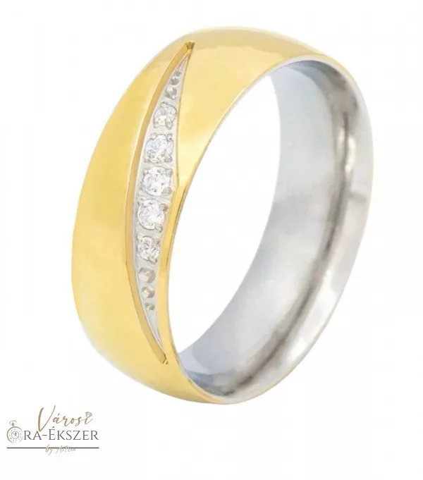 Ez az arany színű, köves nemesacél karikagyűrű női viseletre készült, amely elegáns és modern megjelenést biztosít. A 6 mm-es szélesség kissé hangsúlyosabb, mégis kifinomult hatást kelt, így tökéletes választás azoknak, akik egy látványosabb, de ízléses ékszert keresnek.