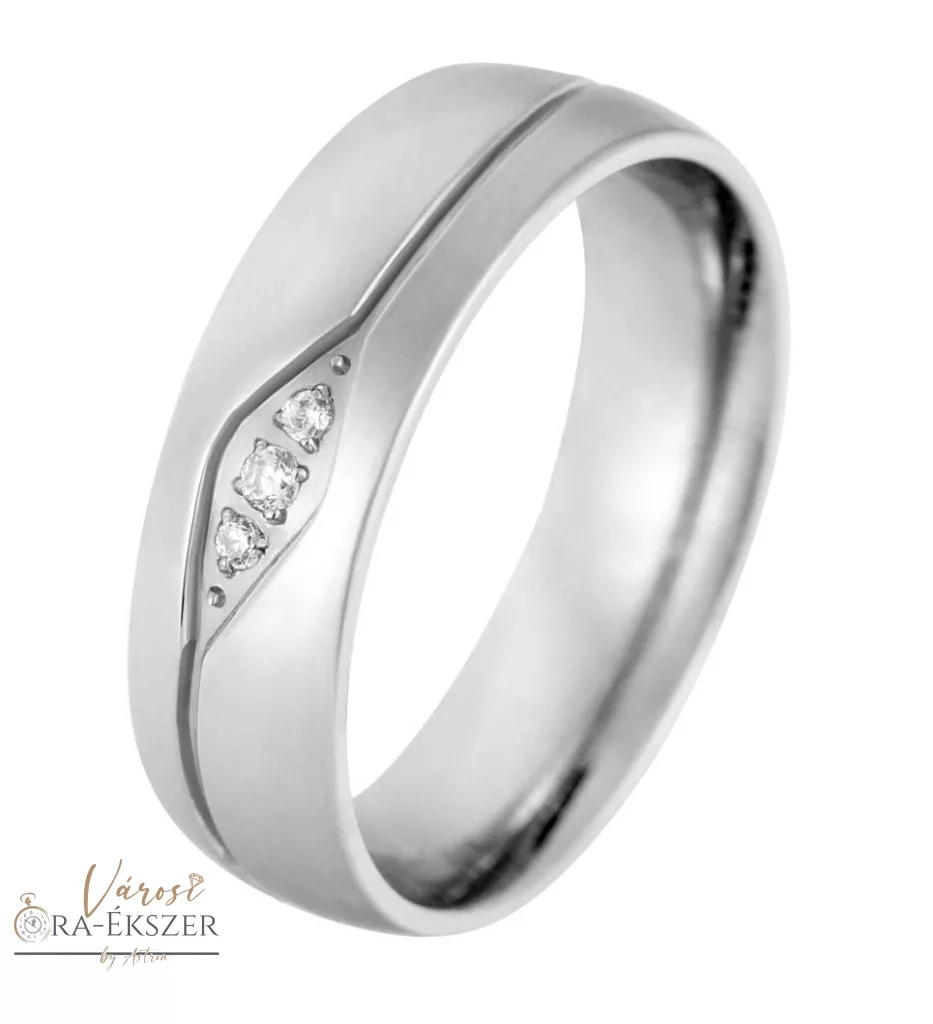 Ez az ezüst színű köves nemesacél karikagyűrű női viseletre készült, amely elegáns és prémium megjelenést biztosít. A kerekített forma lágyabb, finomabb hatást kelt, így különösen nőies és kényelmes viseletet nyújt.
