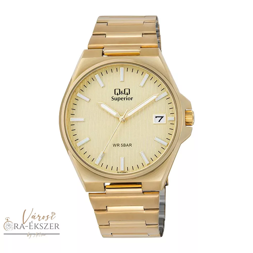 Q&Q férfi karóra, arany színű nemesacél tok, arany színű foszforeszkáló számlap, arany színű nemesacél csat S21A-006PY