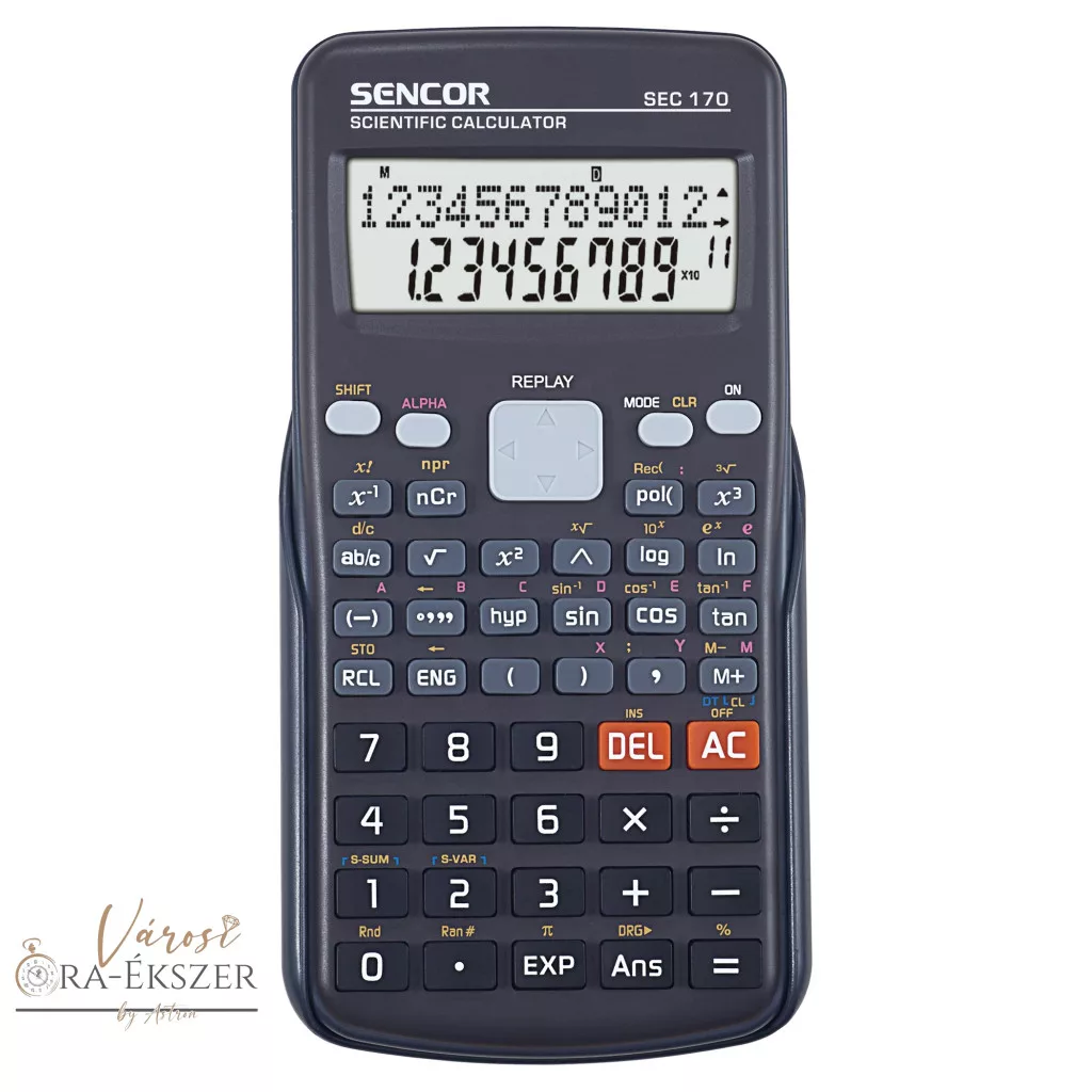 A nagy, a két soros kialakítású LCD kijelzőn lehetősége van 240 tudományos művelet elvégzésére. A számológép segítségével a törtszámítások, a regressziószámítások, a variációk és kombinációk, a trigonometrikus és hiperbolikus függvények, a logaritmus és exponenciális függvények, a koordináták és szögek transzformációja, a hatvány és gyök és statisztikai számítások, a bináris, az oktális és akár a hexadecimális számítások is elvégezhetők. A 12 jel és 10+2 számjegy mátrixban történő ábrázolása és a zárójelek használatát a független memória biztosítja. A SEC 170 kettős áramellátású lehetőség van a beépített napelem segítségével vagy alkáli elemmel történő üzemeltetésre, valamint az automata kikapcsolás funkció gazdaságos működést tesz lehetővé. Az erős ABS műanyag tok védi a készüléket a különböző fizikai hatásoktól. A SEC 170 méretét tekintve 164 x 85 x 16 mm, amelyhez 120 g súly társul.