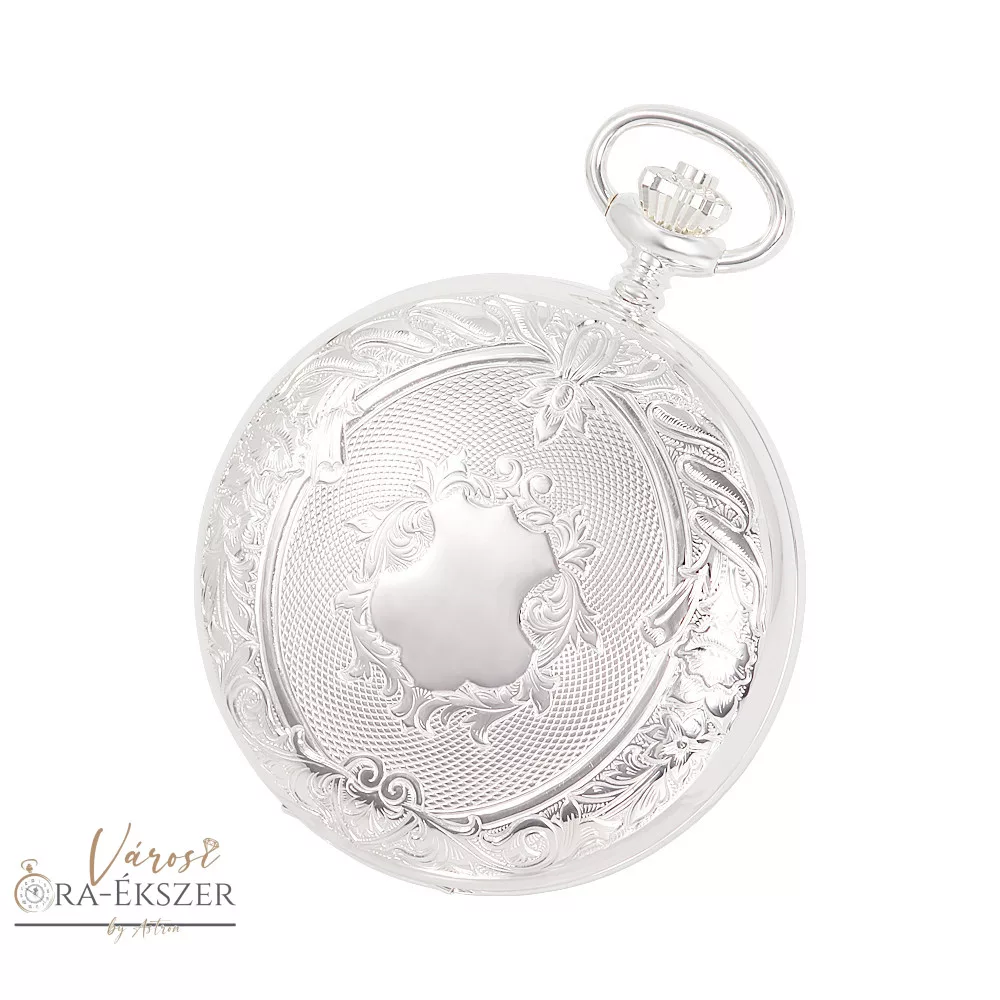 A tok 925 ezüstből készül, amely a nemesfém zsebórák egyik elterjedt alapanyaga. Felülete kifinomult, klasszikus megjelenést biztosít, és jól harmonizál a fehér számlappal. Az ezüst tok visszafogott fénye kiemeli az óra eleganciáját anélkül, hogy hivalkodó lenne.