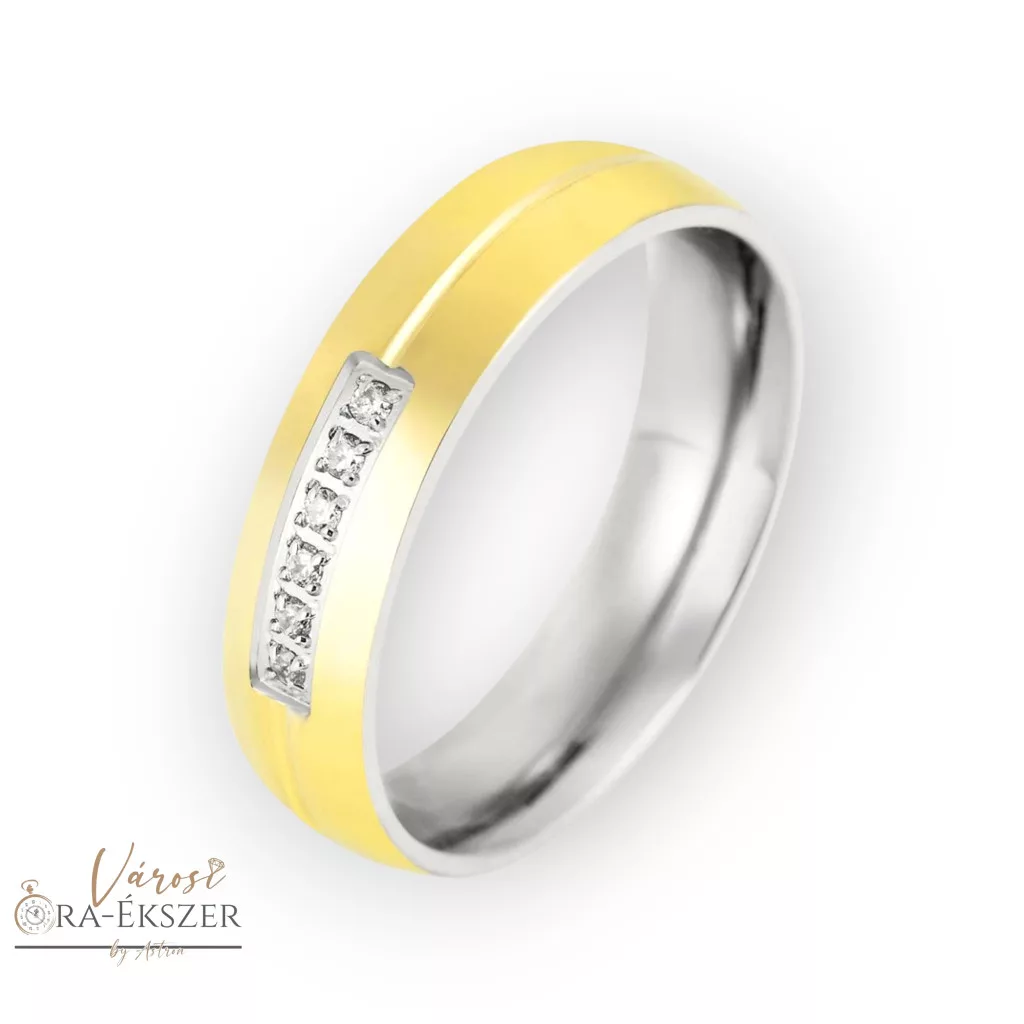 Ez az arany színű, köves nemesacél karikagyűrű női viseletre készült, amely elegáns és időtálló megjelenést biztosít. A kerekített forma lágy, finom vonalvezetést ad a gyűrűnek, így különösen kényelmes és nőies viseletet nyújt.