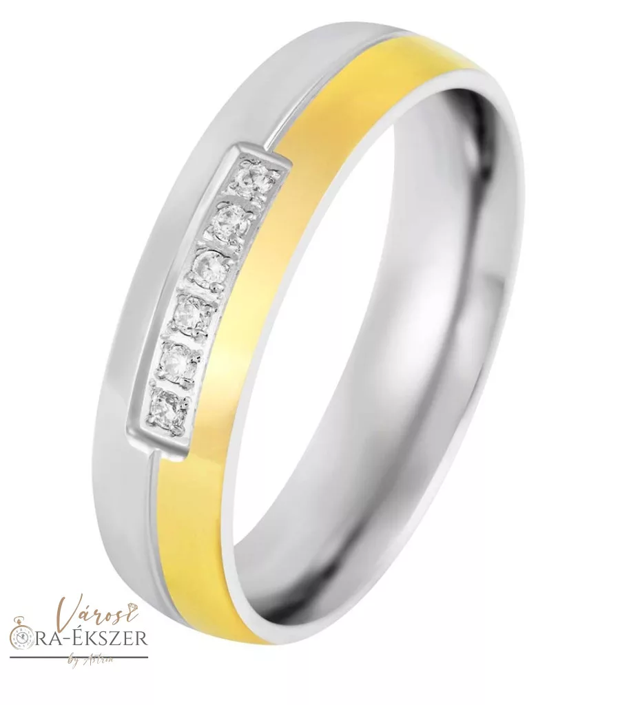 Ez az 5 mm-es bicolor köves karikagyűrű a nőies elegancia, a modern design és a tartósság tökéletes kombinációja.