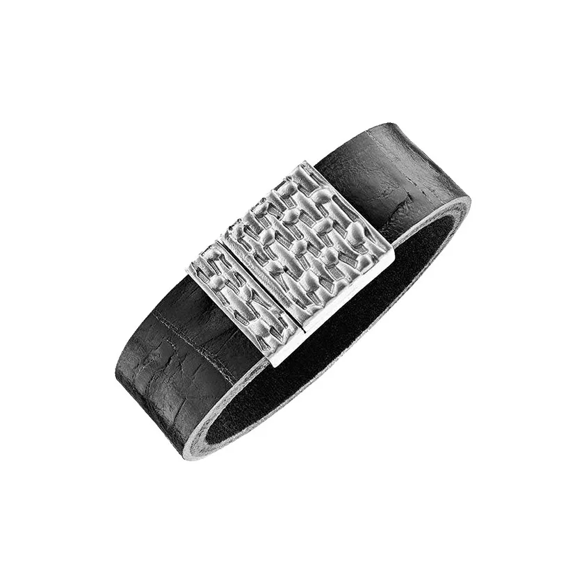 POLICE fekete valódi bőr és nemesacél karkötő, férfi